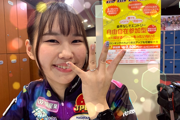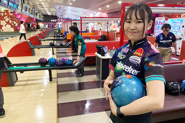 永山コパボウル)を見て「私もあんなふうに曲げたい」と今泉プロにお願いして、軽いボールで一本助走から練習しました。