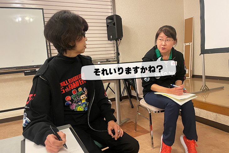 そんな世界最高峰のトップコーチが、直接指導してくれるんですよ。期待で鼻息荒めに会場へ乗り込んだ松Pと芦川ドリラー。